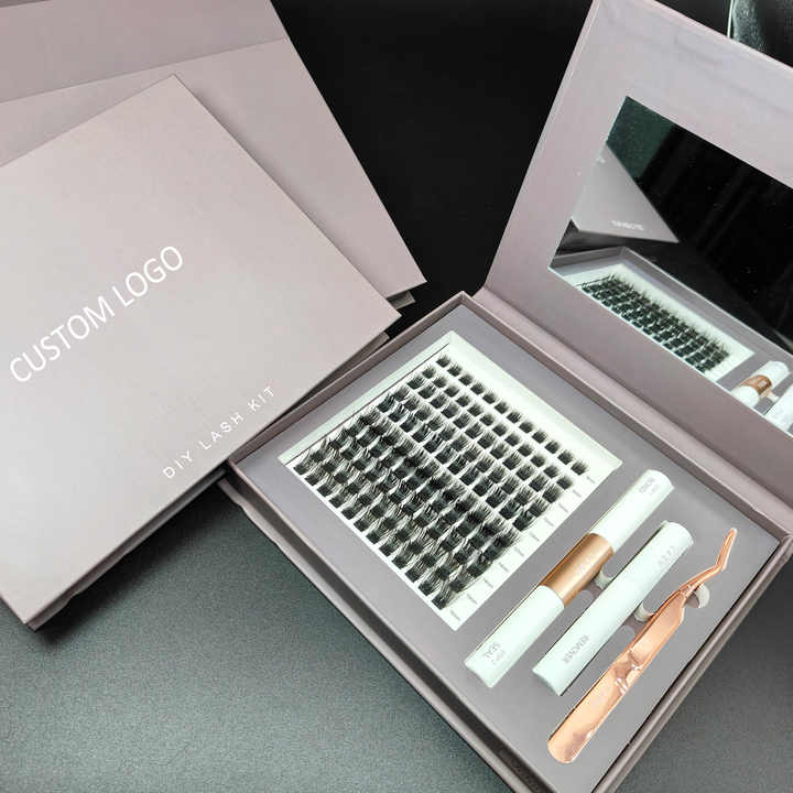 Kit d'Extensions de Cils DIY en Gros, Faux Cils à Logo Personnalisé et Pré-Coupés en Grappes