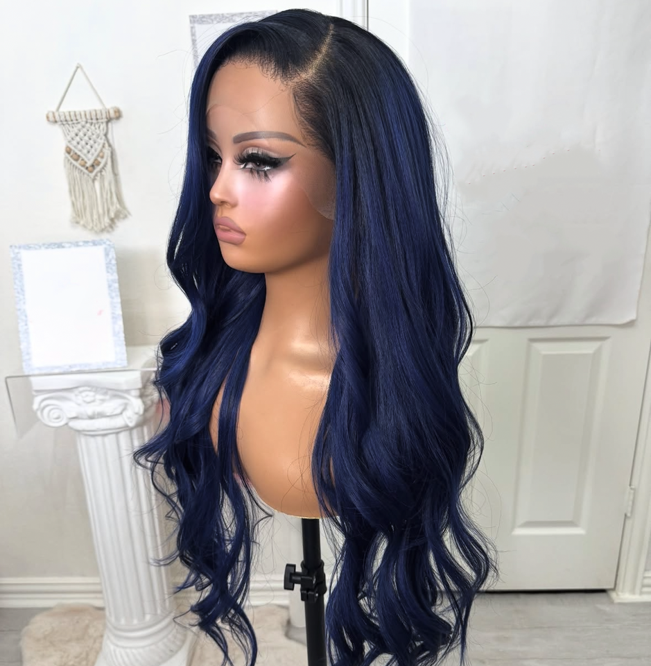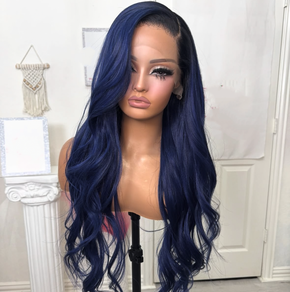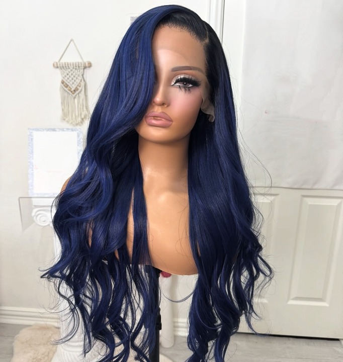 Product Name:Ombre Dark Blue Color Loose Wave Human Hair Lace Front Wig