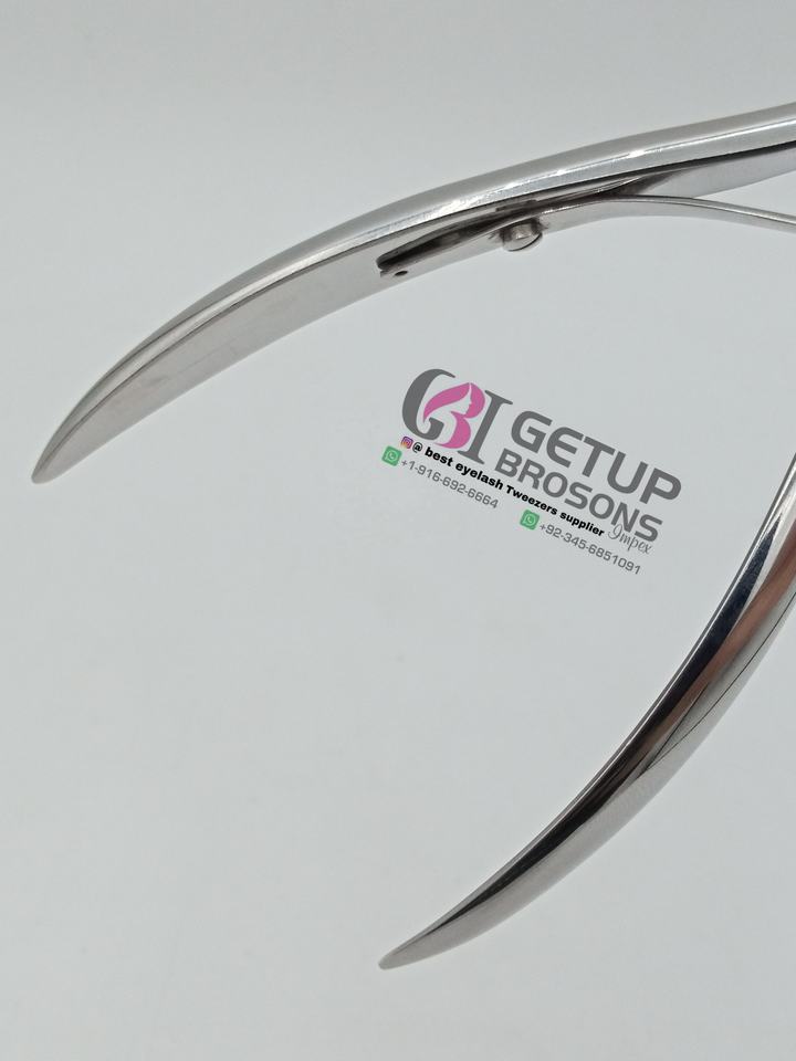 Vente en gros : Meilleures pinces à cuticules courbées argentées en acier inoxydable, personnalisables (logo, emballage, couleurs), instruments de beauté