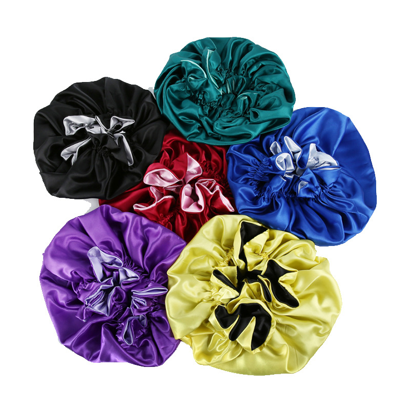 Vente en gros de bonnets en satin double face réversibles pour femmes et bébés, ensemble de bonnets personnalisés avec étiquette privée pour maman et moi