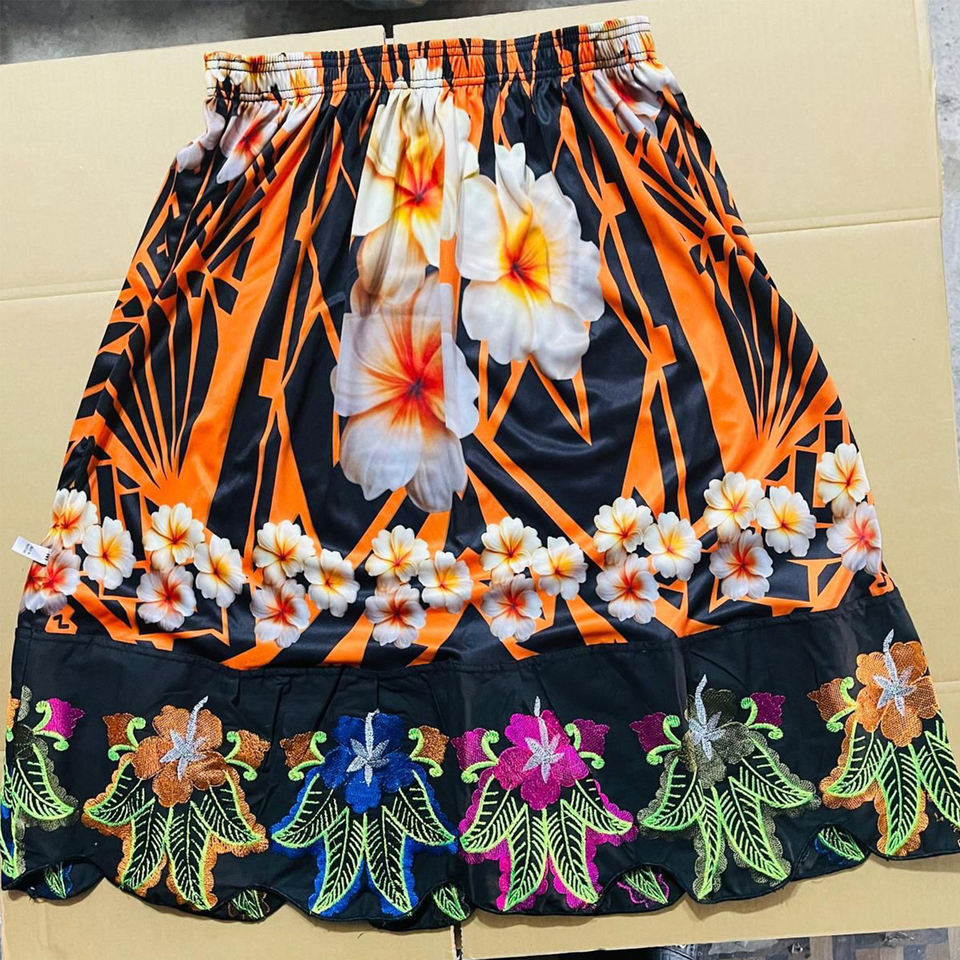 Vente en gros de patrons de couture en coton imprimé à la main Jupes insulaires brodées pour femmes en coton personnalisé de haute qualité Pacific