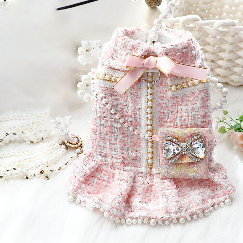 Product name:elegant warm and thick cute bow pet skirt dog clothes dress