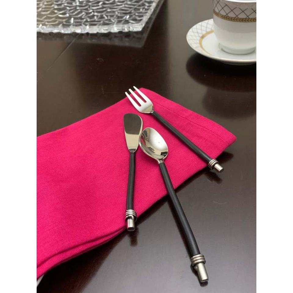 Vente en gros de couverts design en acier inoxydable mat, couverts avec manche en métal noir, ustensile à thé doré, couteaux, cuillères, fourchettes plaquées