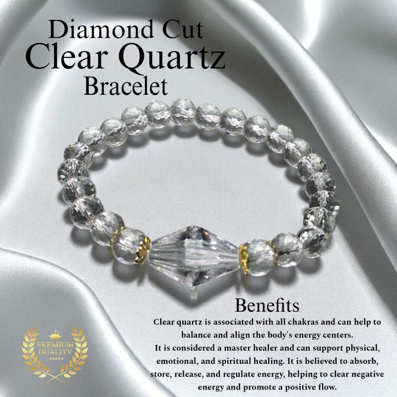 Bracelets de perles de quartz en cristal clair taillé en diamant, pierre semi-précieuse polie pour l'artisanat spirituel Feng Shui, vente en gros