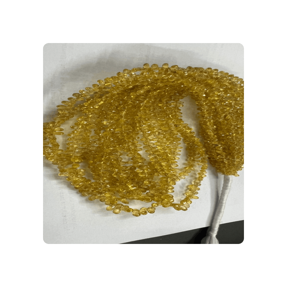 Vente en gros 17 pouces Premium 3-4mm perles de saphir jaune naturel à facettes Briolette larmes différentes tailles pour la fabrication de bijoux