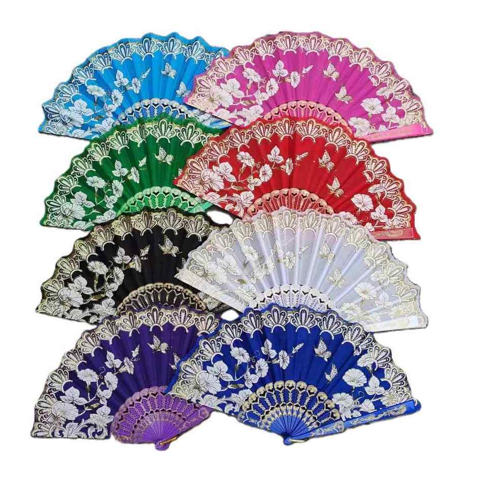 Vente directe en gros, éventail portable pour femmes, pour la danse et les mariages, éventail pliable à imprimé rose, éventail chinois
