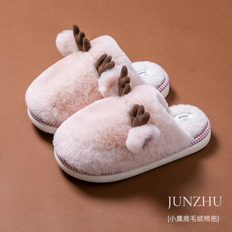 Vente directe en gros PVC semelle antidérapante pantoufles en fourrure doublure en peluche cerf coton pantoufles avec style chaud en gros
