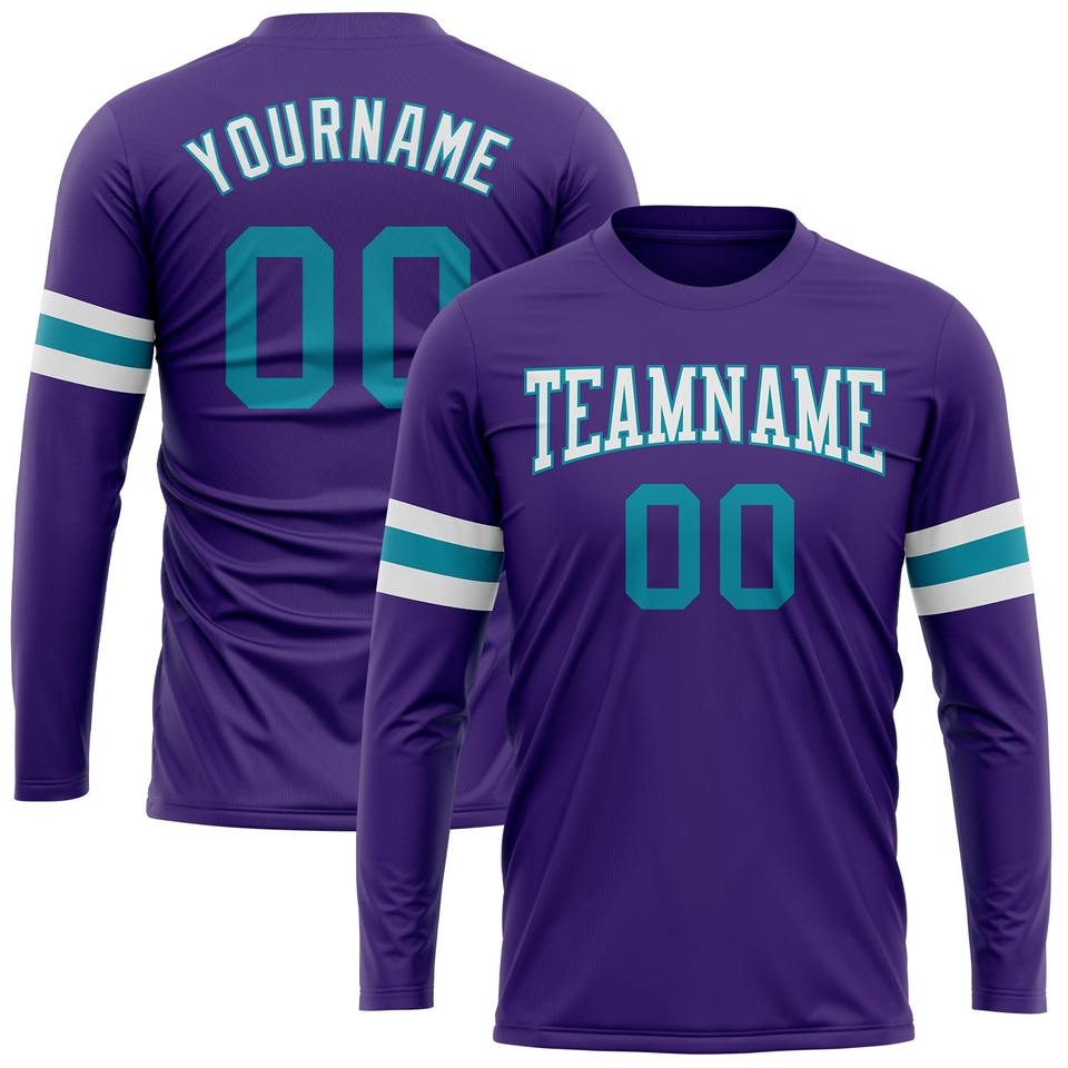 Wholesale Direct shirts Engro Sportswear industry t-shirts Custom Purple Teal-White Long Sleeve Performance T-Shirt