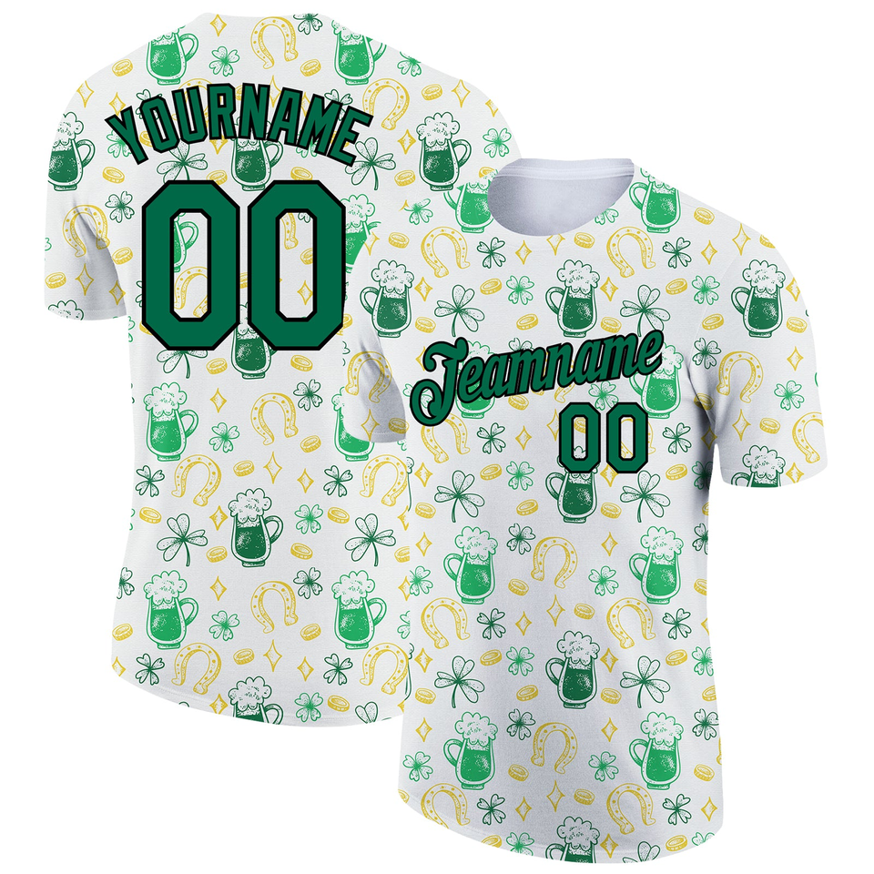 Wholesale Direct shirts Engro Sportswear industry Custom White Kelly Green-Black 3D Design Beer And .Day Performance T-Shirt