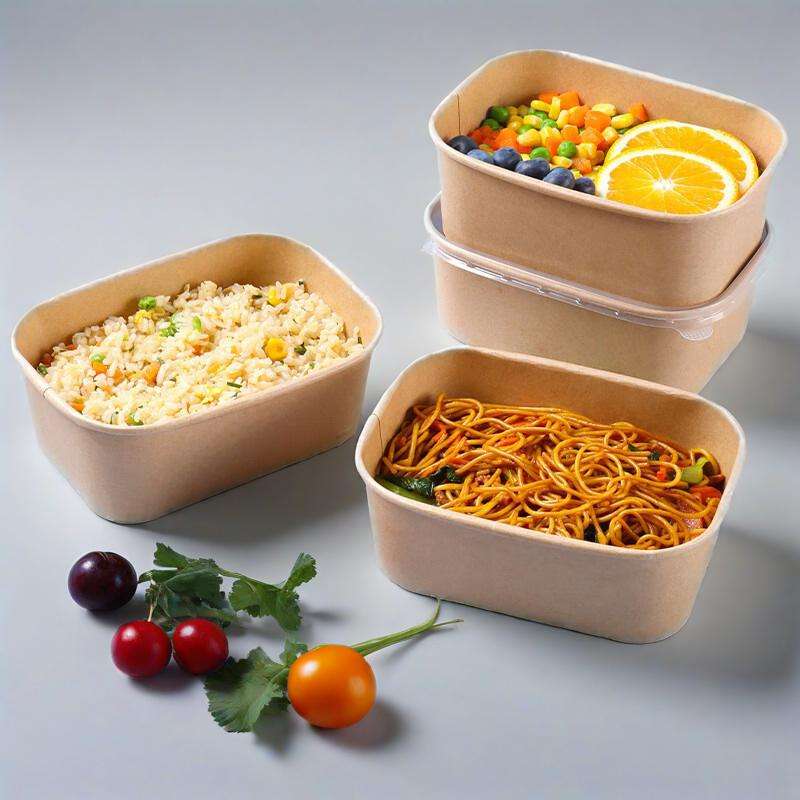 Contenant alimentaire rectangulaire en papier blanc imprimé sur mesure, jetable, de qualité alimentaire, pour salades et autres aliments, vente en gros