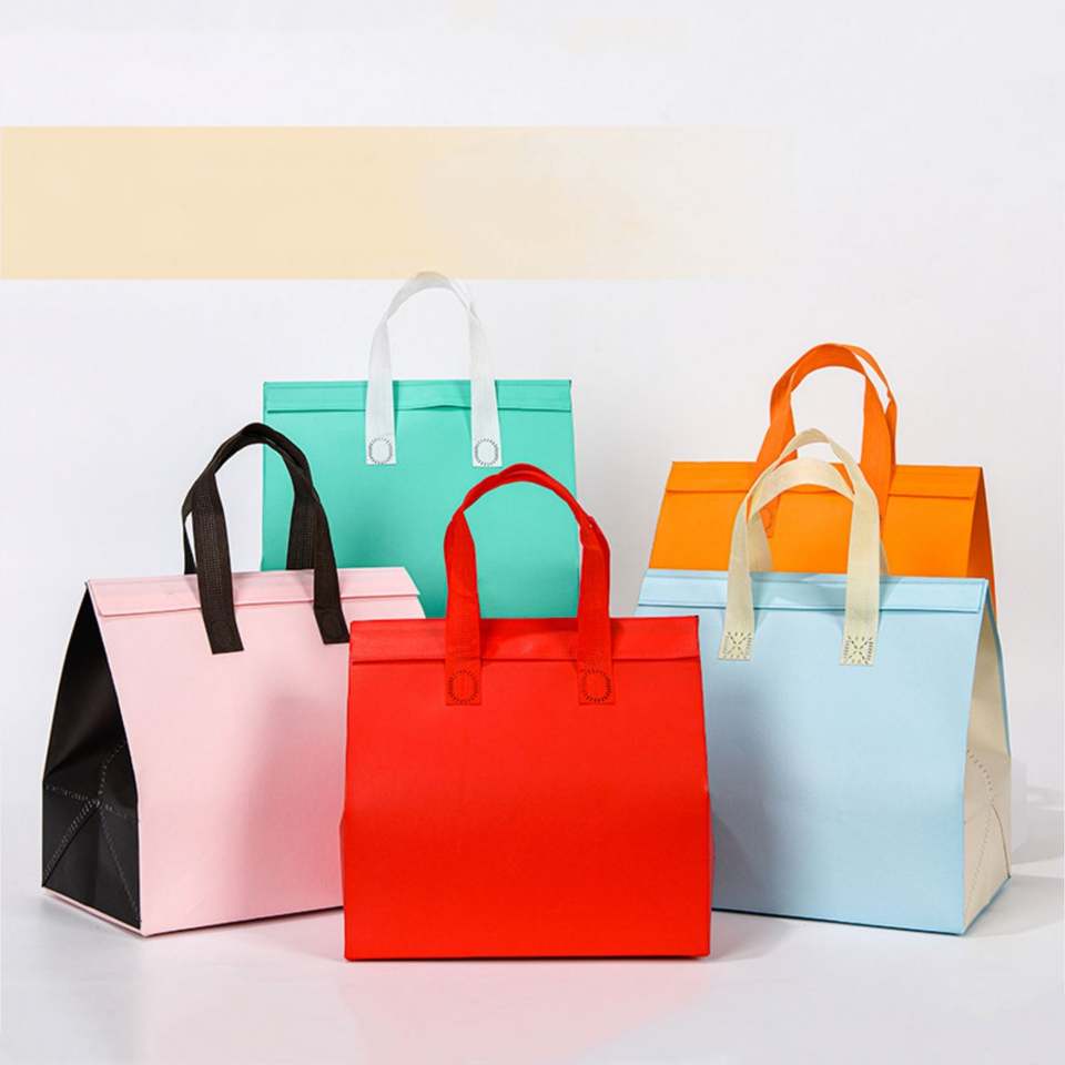 Wholesale Disposable Non-Woven Aluminum Foil Cooler Bag Insulated Takeaway Catering Fast Food Beverage Pack Letter Pattern Tote