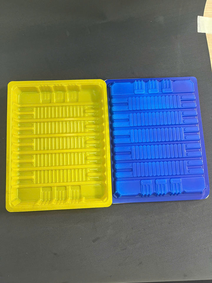 Vente en gros Récipient jetable rectangulaire en plastique bleu pour plateau de viande et de fruits de mer Emballage blister pour aliments transformés pour les fêtes
