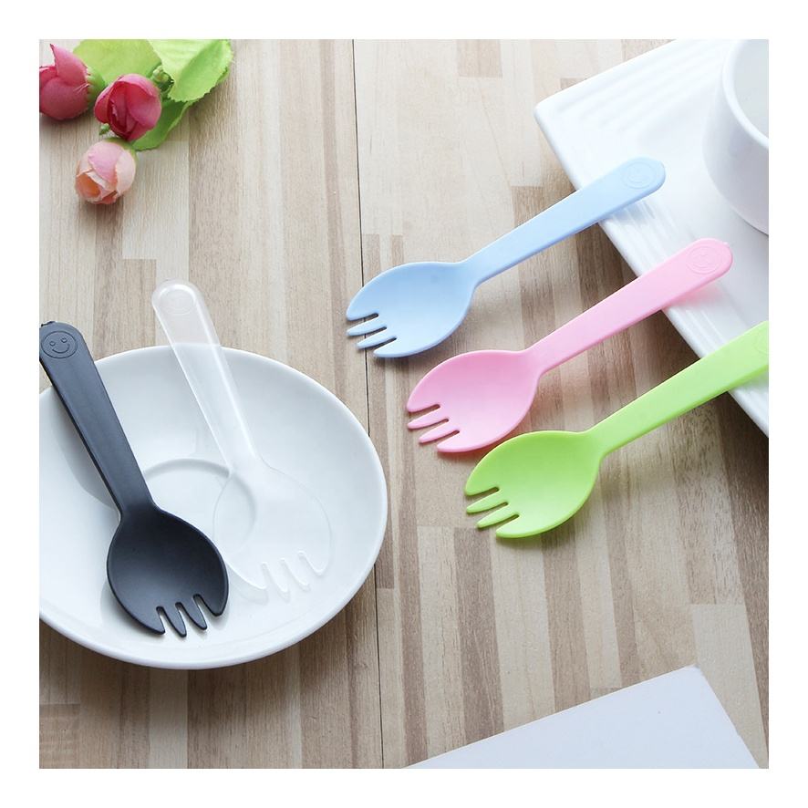 Vente en gros de mini glace pilée jetable en plastique clair, rose, bleu, vert, noir, salade de crème glacée, gâteau aux fruits, fourchette et cuillère à dessert