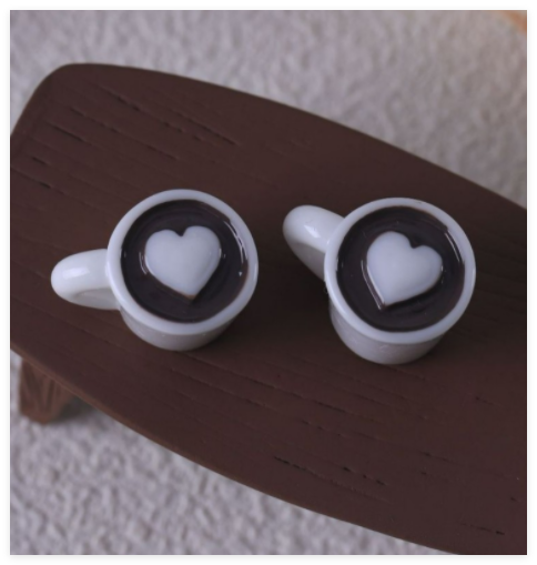 Wholesale Diy Kit Cartoon Miniature Dollhouse Accessories Food Heart Drink Mugs Resin Coffee Cups for Keychain Collectible Toys