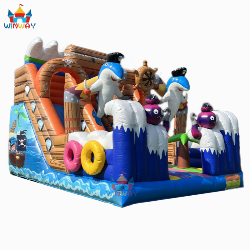 Toboggan gonflable pirate dauphin en gros, équipement de jeux aquatiques pour enfants en plein air