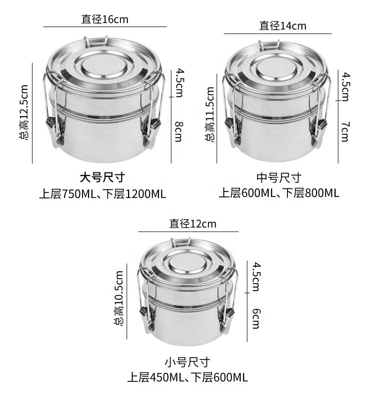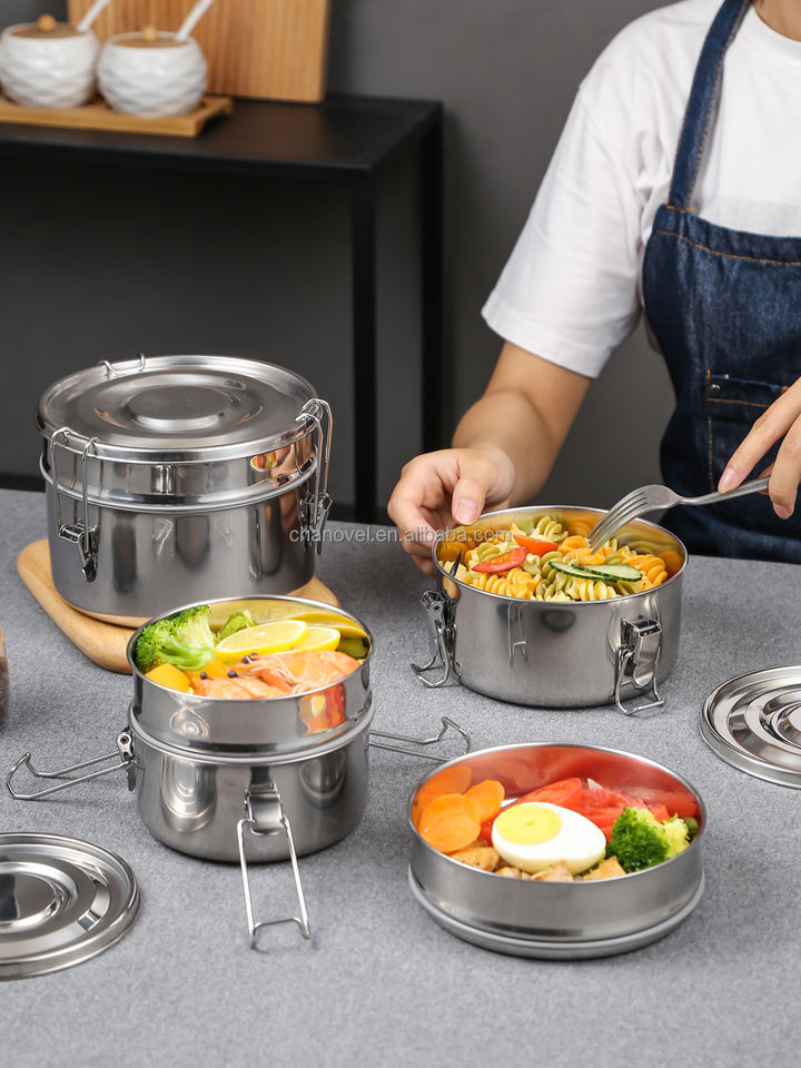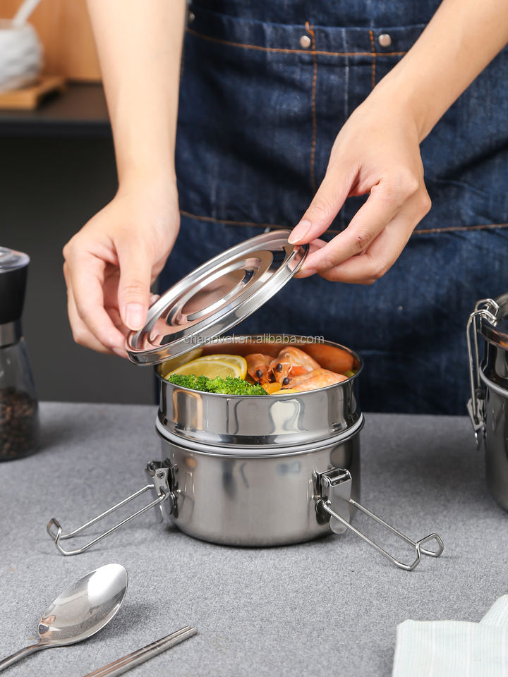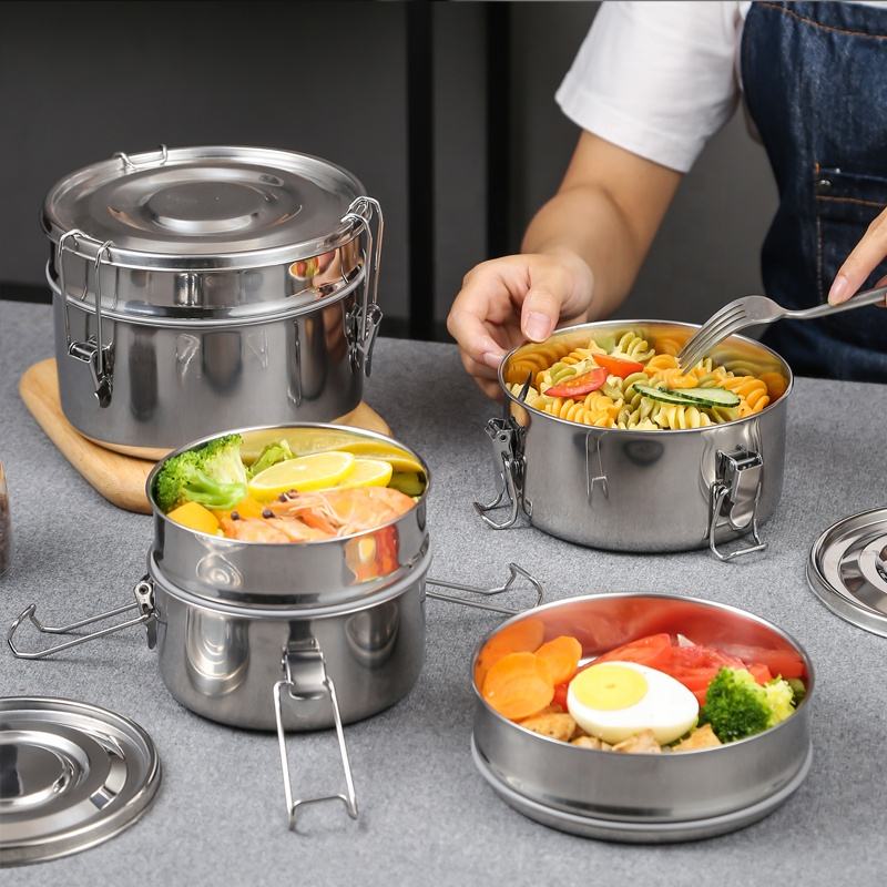 Vente en gros de boîte à lunch en métal en acier inoxydable à double couche grande boîte à bento avec design multicouche pour le stockage des aliments au travail et à l'école