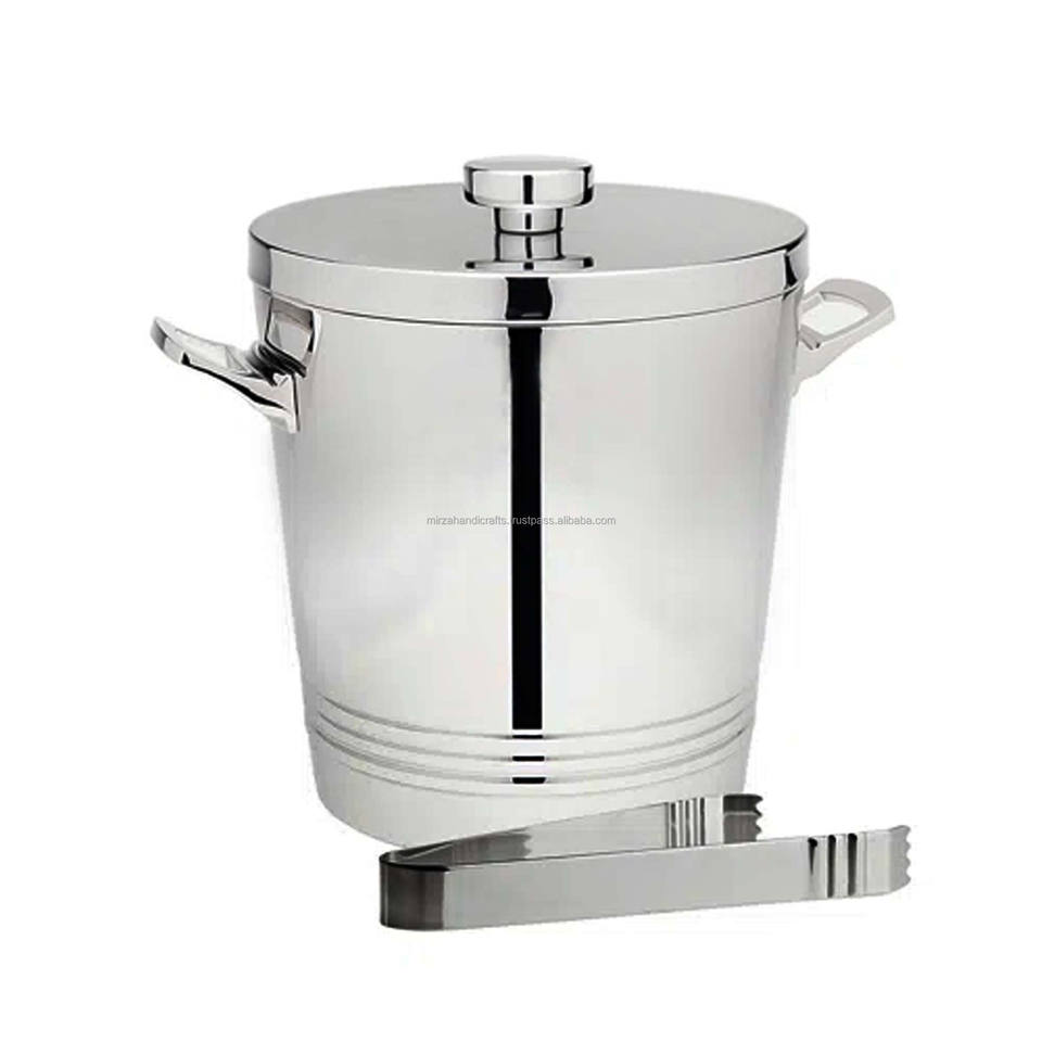 Wholesale Double Wall Manufacture and Supplier Stainless Steel Ice Buckets With Lid Tong and Handle for Hotel Home bar Decor