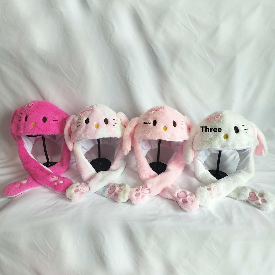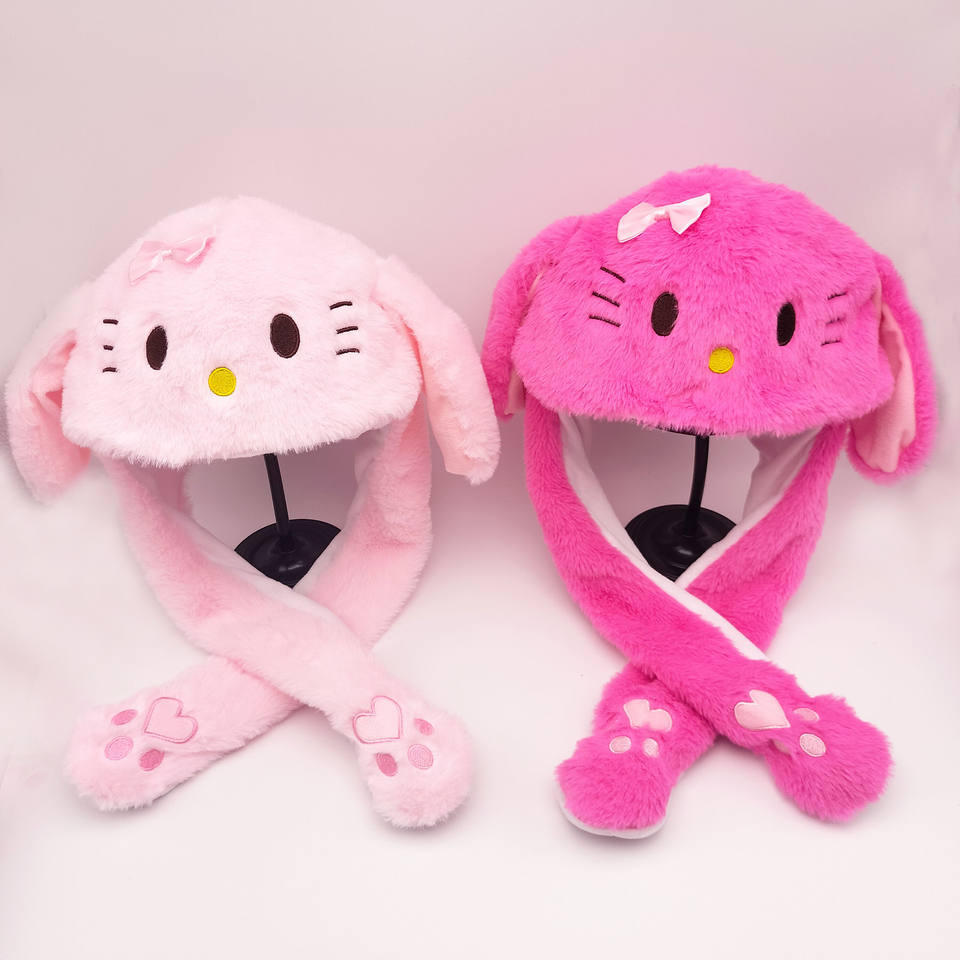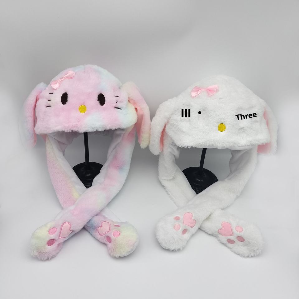 Vente en gros d'oreilles de lapin Douyin Chapeau à oreilles mobiles Jouet en coton polyester pour enfants Style de décrochage du marché de nuit Fonction de soulagement du stress