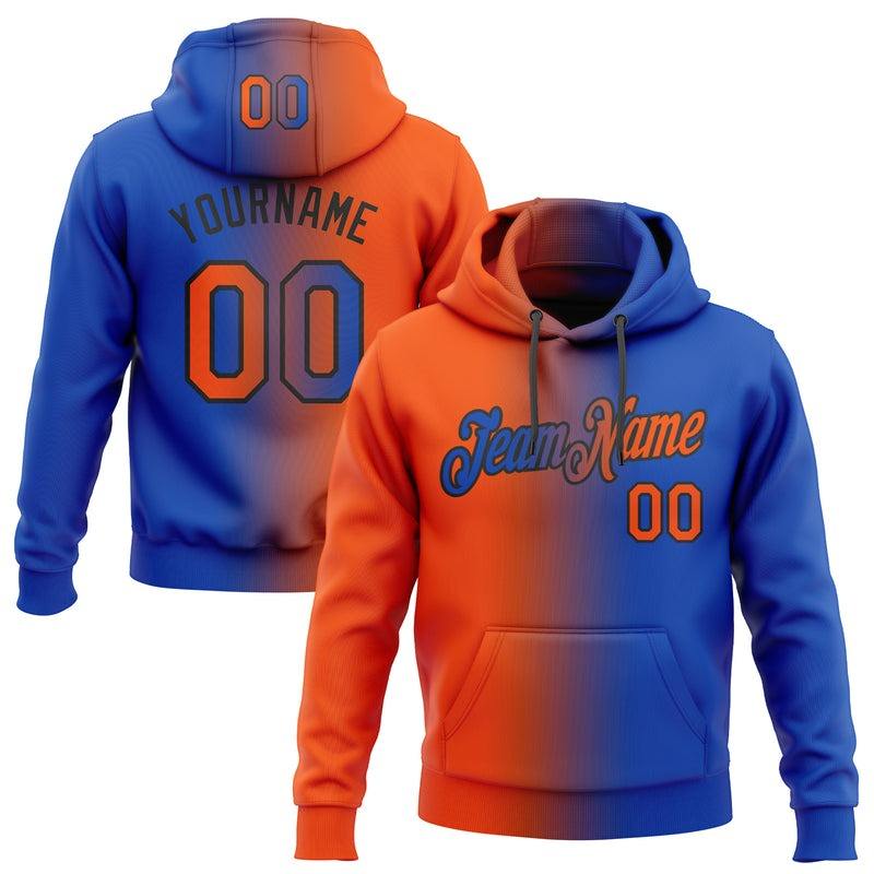 Vente en gros Livraison directe Sweat-shirt à capuche personnalisé cousu Thunder Blue Orange-Black Gradient Fashion Sports Pullover