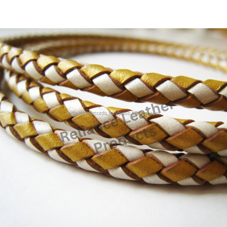 Vente en gros de cordon en cuir de vachette tressé bicolore pour bijoux, bracelets, collier, breloque, couleurs personnalisées, composants