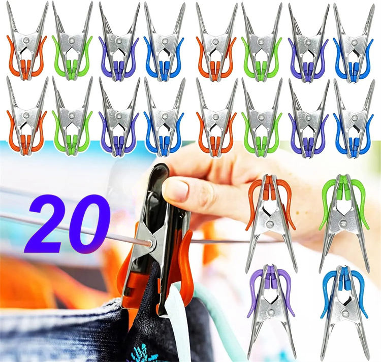 Wholesale Durable Portable Multifunctional Stainless Steel Windproof Clothes Pegs with Hooks for Living Room and Wardrobe Use