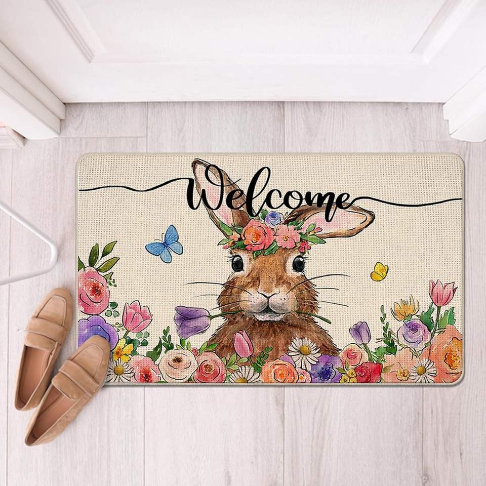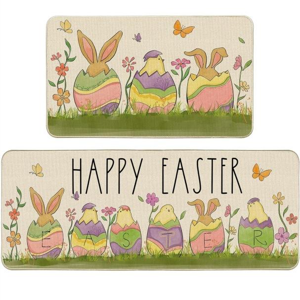 Tapis de cuisine antidérapant et imperméable à motif lapin de Pâques, idéal pour salle de bain, porte et décoration intérieure - Vente en gros