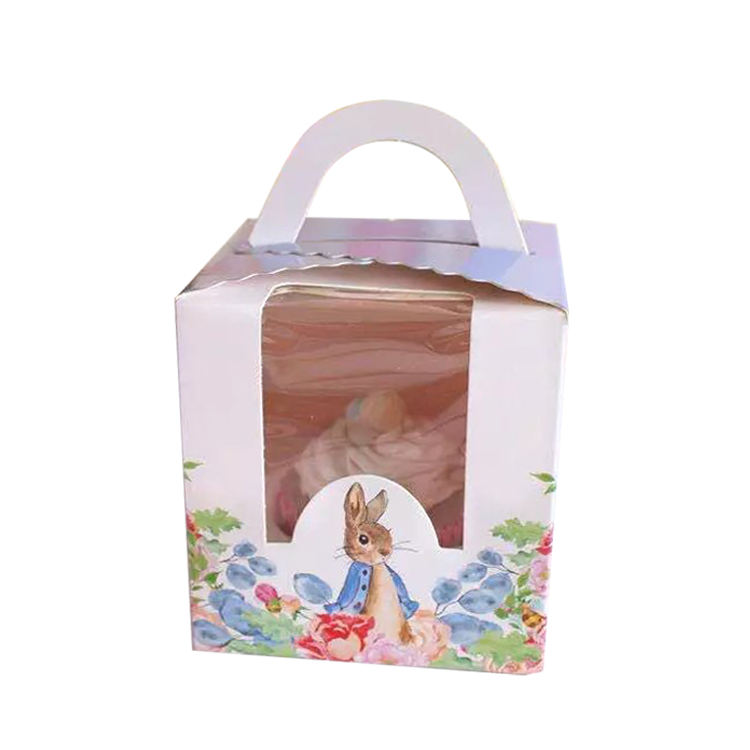 Festival de Pâques Vente en gros Lapin mignon Joli motif créatif Mini gâteau Fête Boîte-cadeau Unique Cupcake Boîtes en papier avec fenêtre