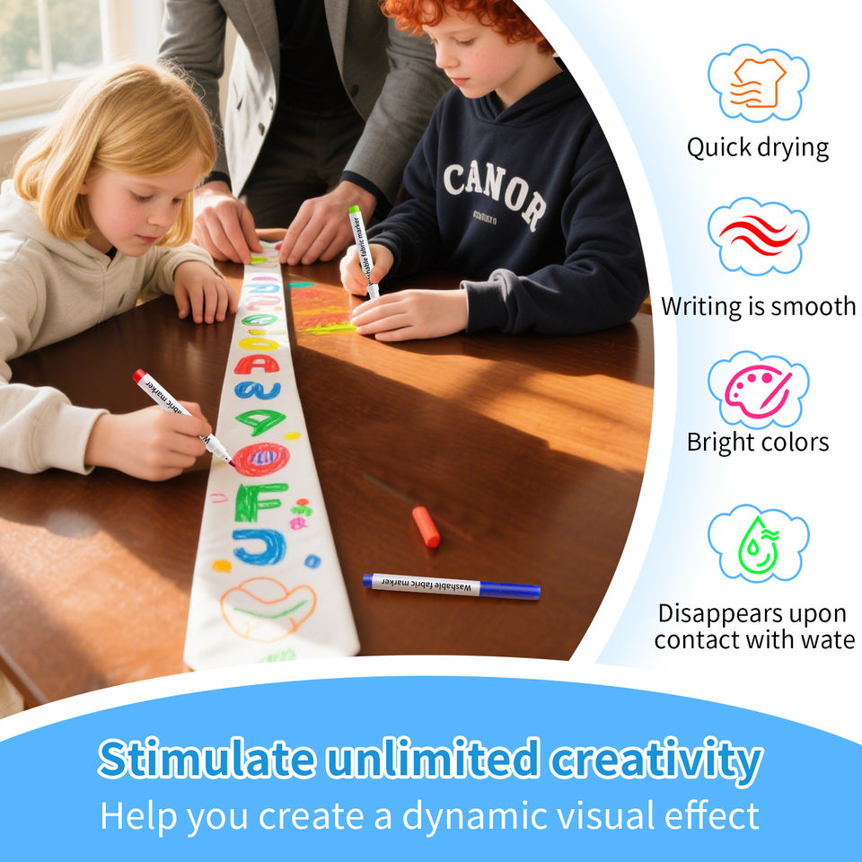 Marqueur textile super lavable, facile à nettoyer, couleur vive, marqueur permanent, marqueur textile en gros