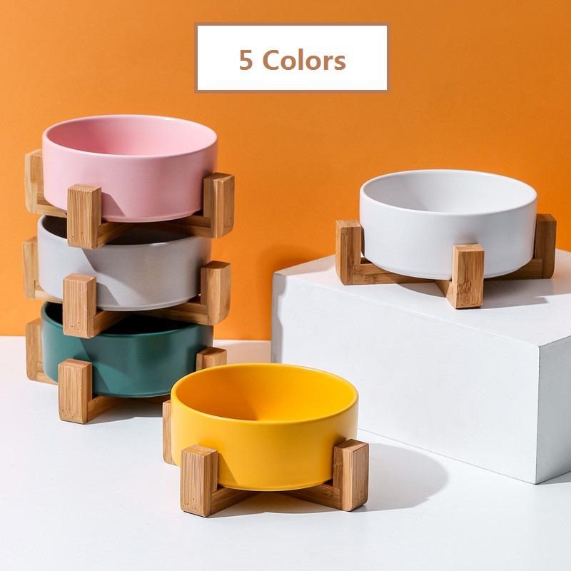 Bol en céramique pour animaux de compagnie, vente en gros, facile à nettoyer, Option multicolore, mangeoire d'eau pour chiens et chats, avec support en bois, 4 pièces