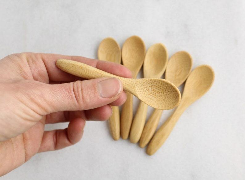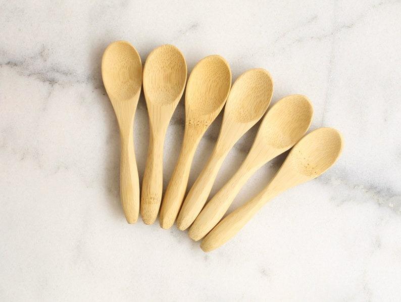 Ensemble de 6 ustensiles de cuisine en bois d'acacia teck lisse écologiques en gros, avec poignée antidérapante, cuillères antiadhésives avec polissage miroir