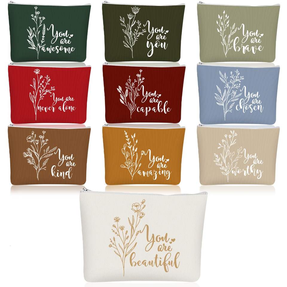 Vente en gros de pochettes écologiques personnalisées en toile de coton à fermeture éclair sacs de maquillage réutilisables de grande capacité avec poignée et impression de logo
