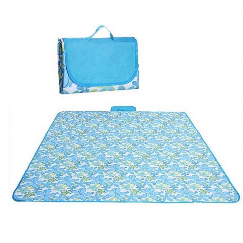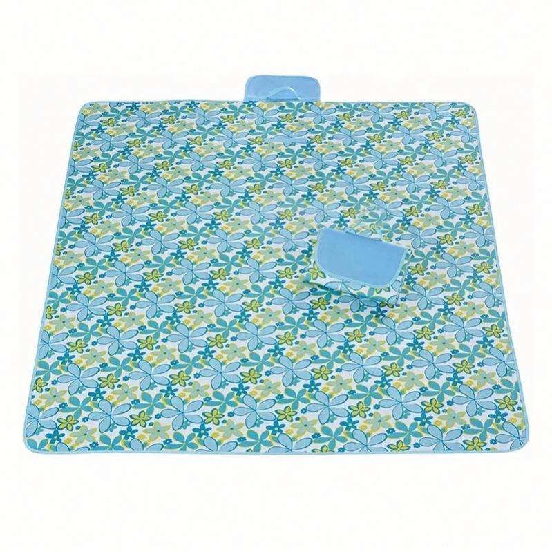 Tapis de pique-nique portable extra large écologique bleu à carreaux avec franges, style bohème vintage, lavable et imperméable pour l'extérieur - Vente en gros