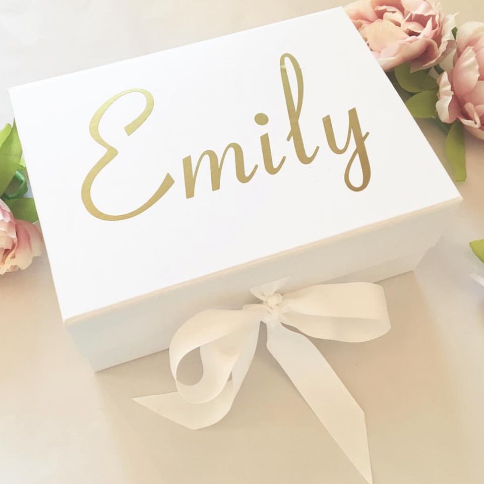 Boîte cadeau pour demoiselle d'honneur, en papier écologique pliable, sur mesure, noire, rigide, magnétique, florale, vente en gros