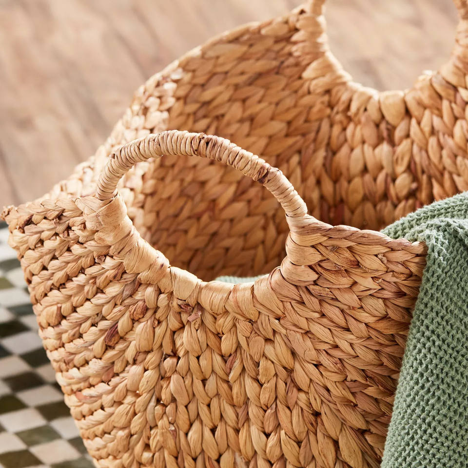 Vente en gros de panier de rangement écologique tissé à la main pliable Design panier de bateau élégant en jacinthe d'eau stockage d'organisation à domicile