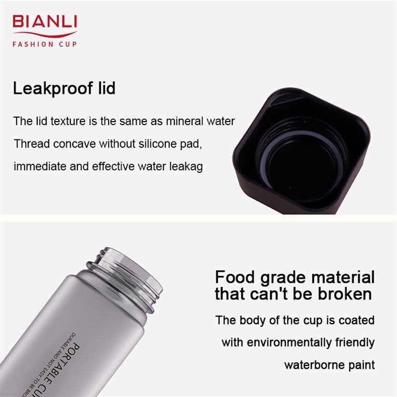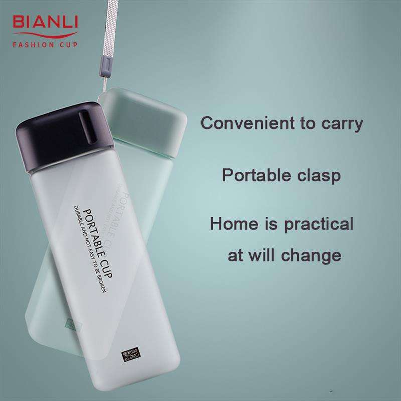 Bouteilles d'eau carrées réutilisables écologiques en plastique pour le sport et les voyages, avec corde, personnalisables, vente en gros