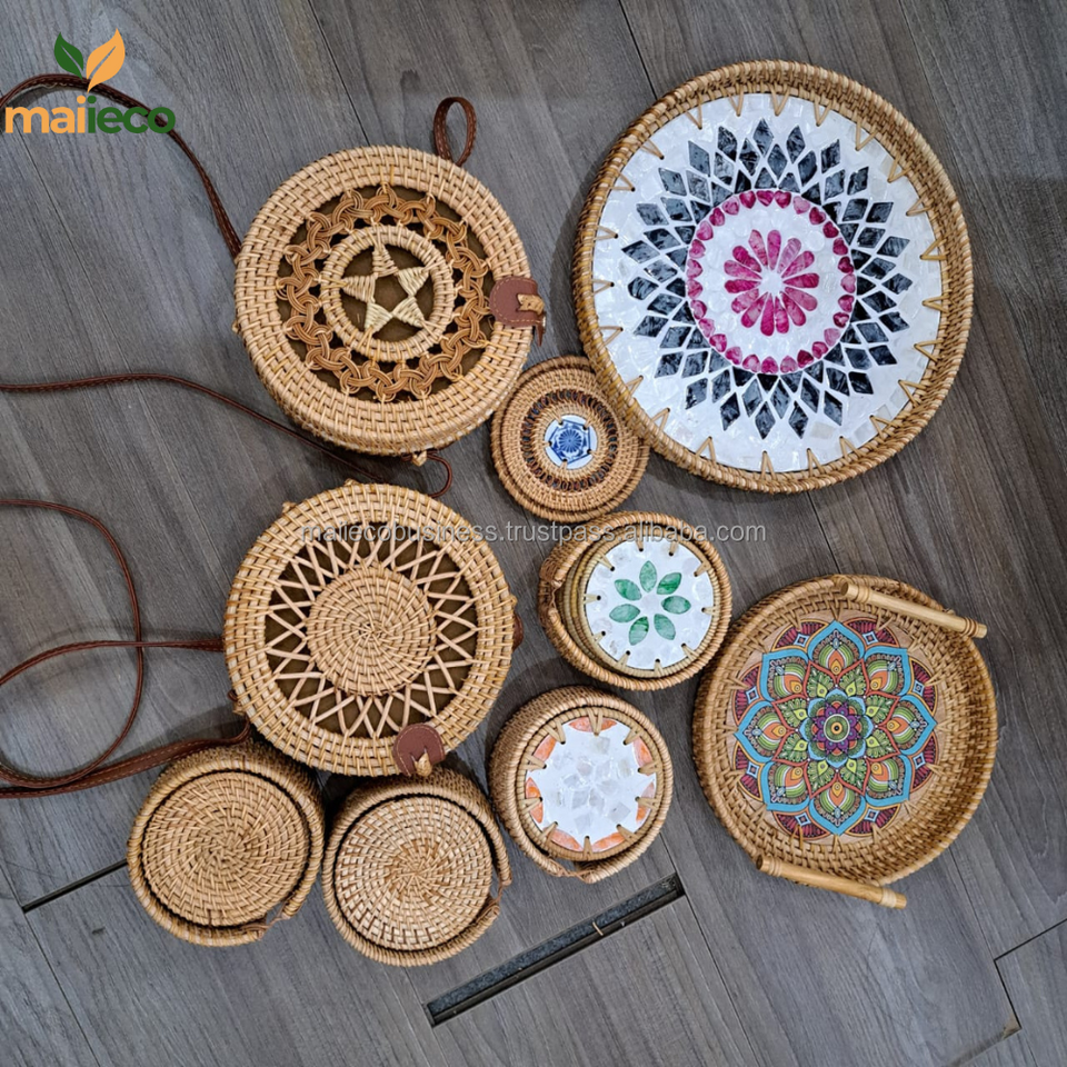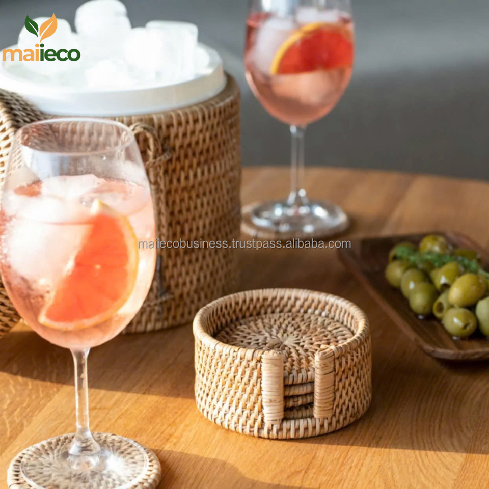 Set of round rattan coasters