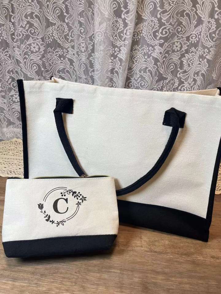 Sac de shopping écologique en gros, lettres personnalisées, mode noir et blanc, sac fourre-tout en toile personnalisé pour femmes avec logo