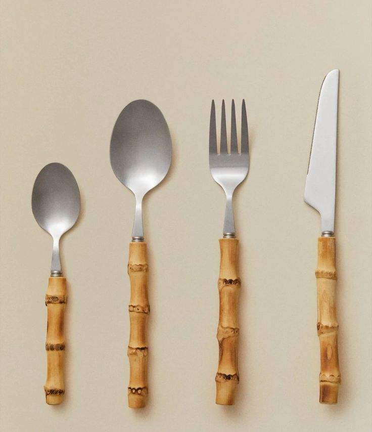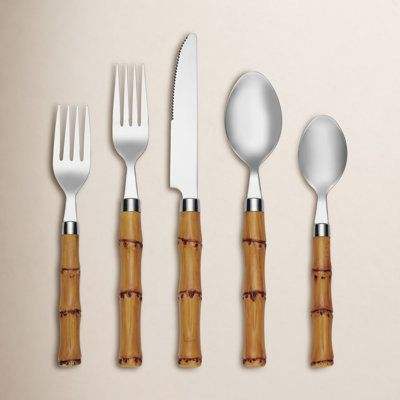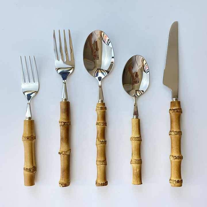 Wholesale Eco Friendly Spoons and Fork Stainless Silverware Flatware 304 Stainless Steel Bamboo Handle Cutlery