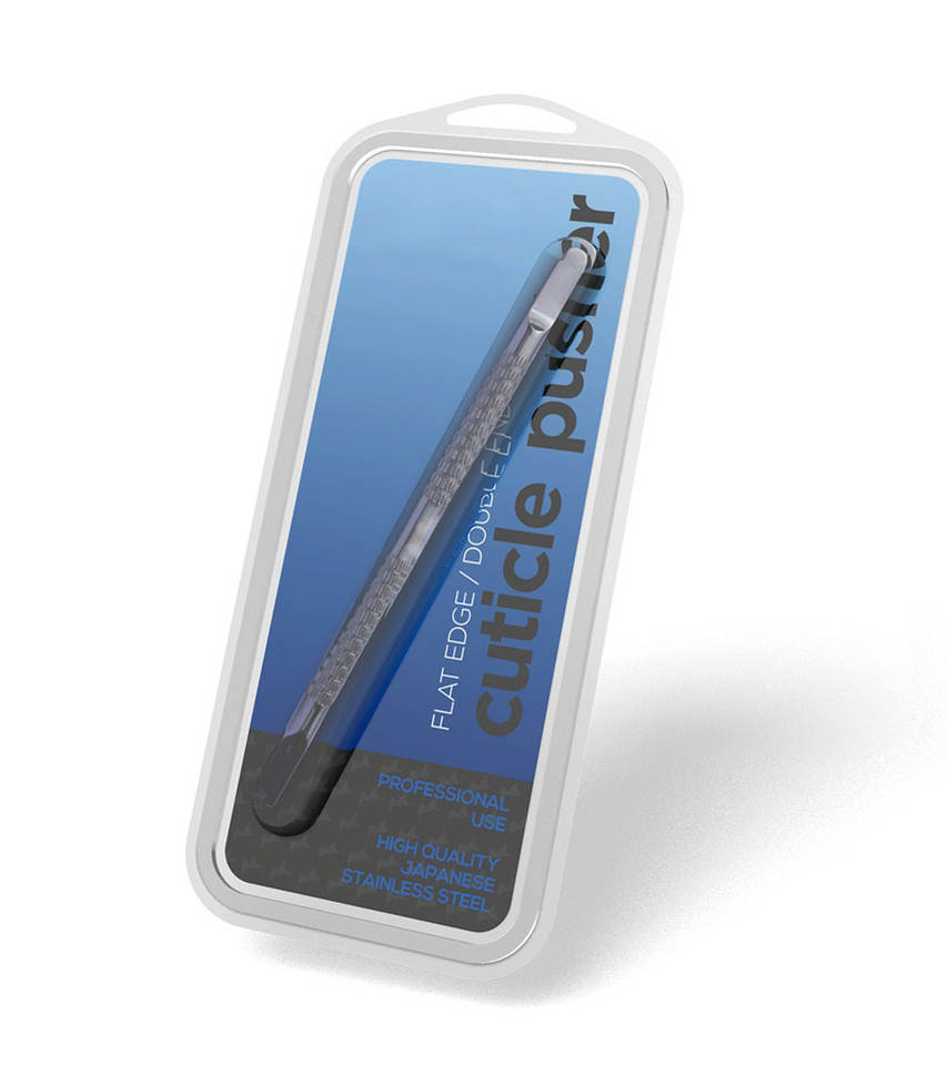 Pousse-cuticules en acier inoxydable réutilisable et écologique, double usage, pour le nettoyage des ongles et l'élimination du gel, avec emballage personnalisé et logo sur mesure.