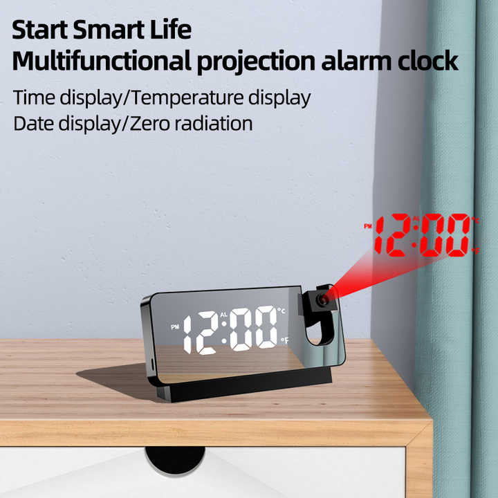 Réveil numérique à projection LED avec mouvement électronique, miroir intégré, pour usage intérieur (salon, cuisine) et extérieur - Vente en gros
