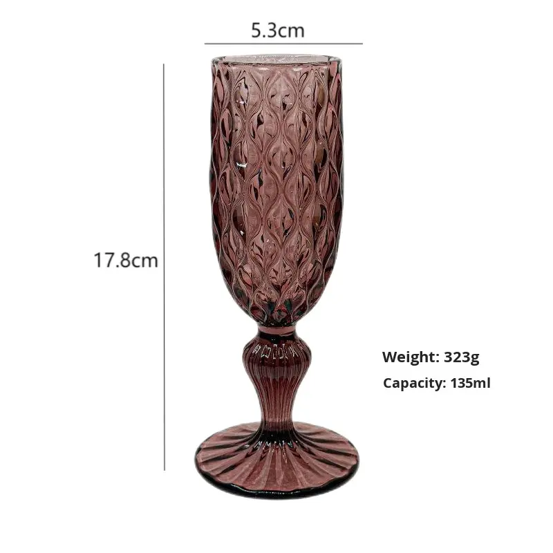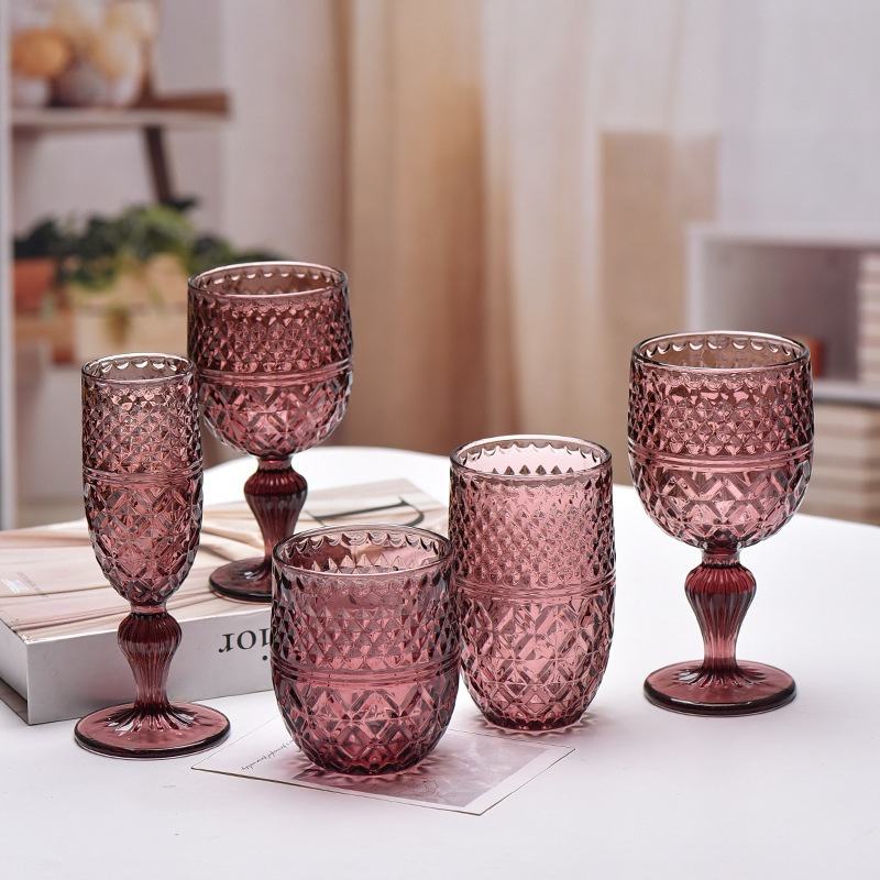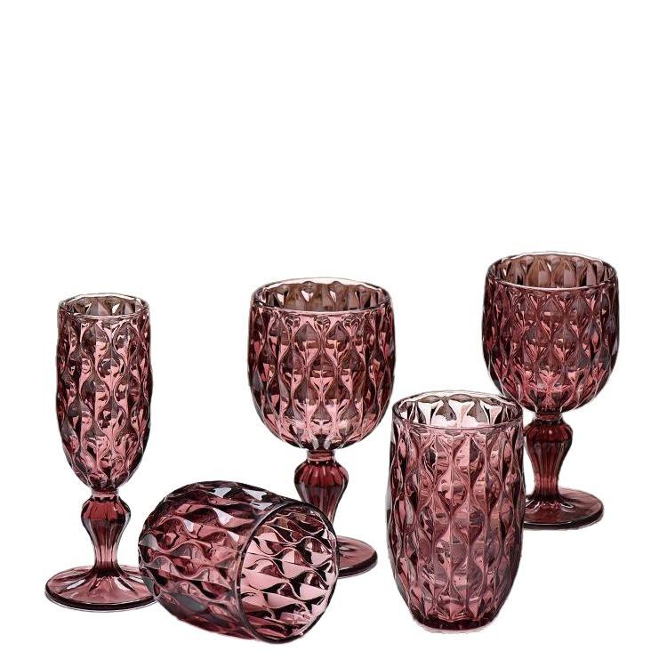 Verres à vin rouge en verre coloré gaufré en gros, verres à vin haut de gamme rétro pour mariage, verres à liqueur pour la maison, verres à vin à pied haut