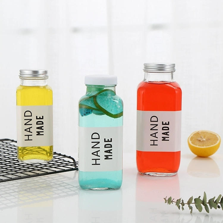 Product name:16oz 500ml Clear French Square Glass Juice Beverage Bottles with Lids