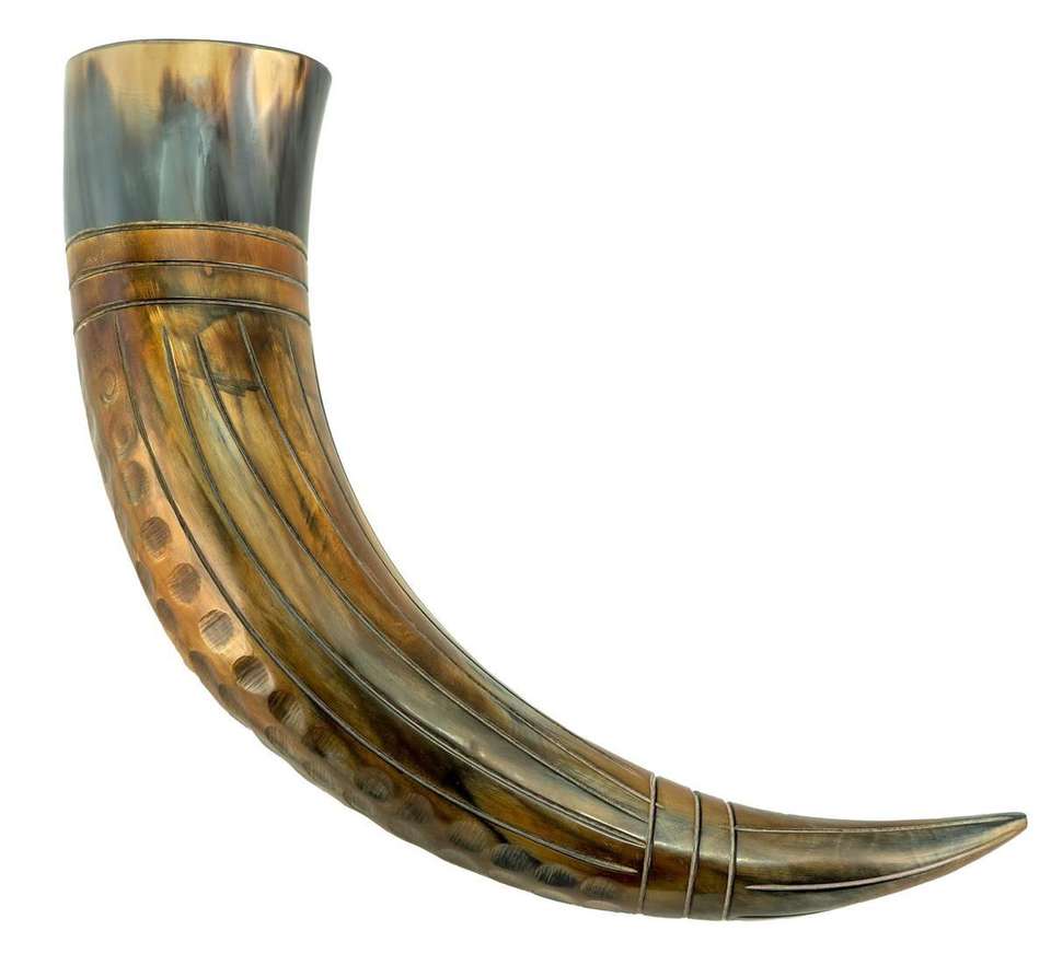 Wholesale Engraving price Carved Viking Horn with Stand Durable Stylish Angel Design Beer Mug For Bars And Hotels Purpose party
