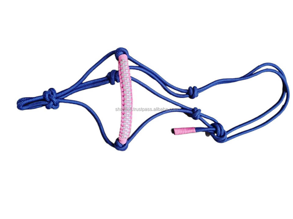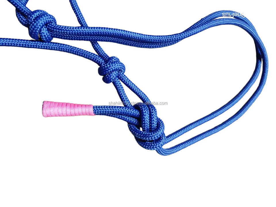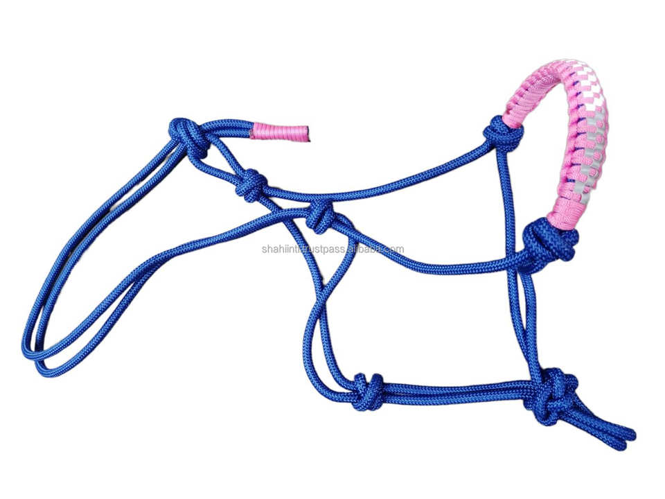 Vente en gros de corde de cheval équestre licou P.P tressé 8mm d'épaisseur bande de nez design fantaisie sur réflecteur portable personnaliser logo d'emballage