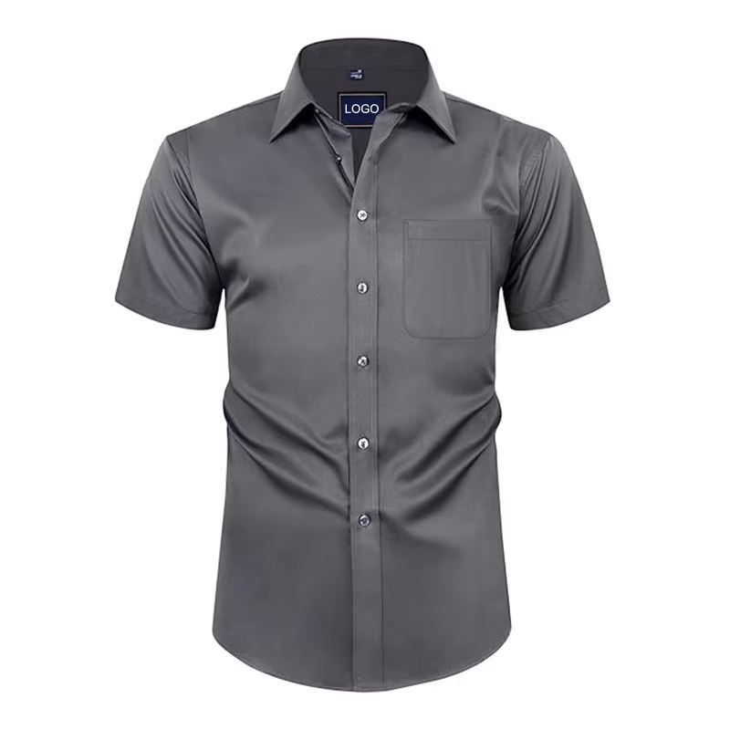 Chemise décontractée respirante à revers de couleur unie pour hommes, style européen et américain, idéale pour l'été – Vente en gros