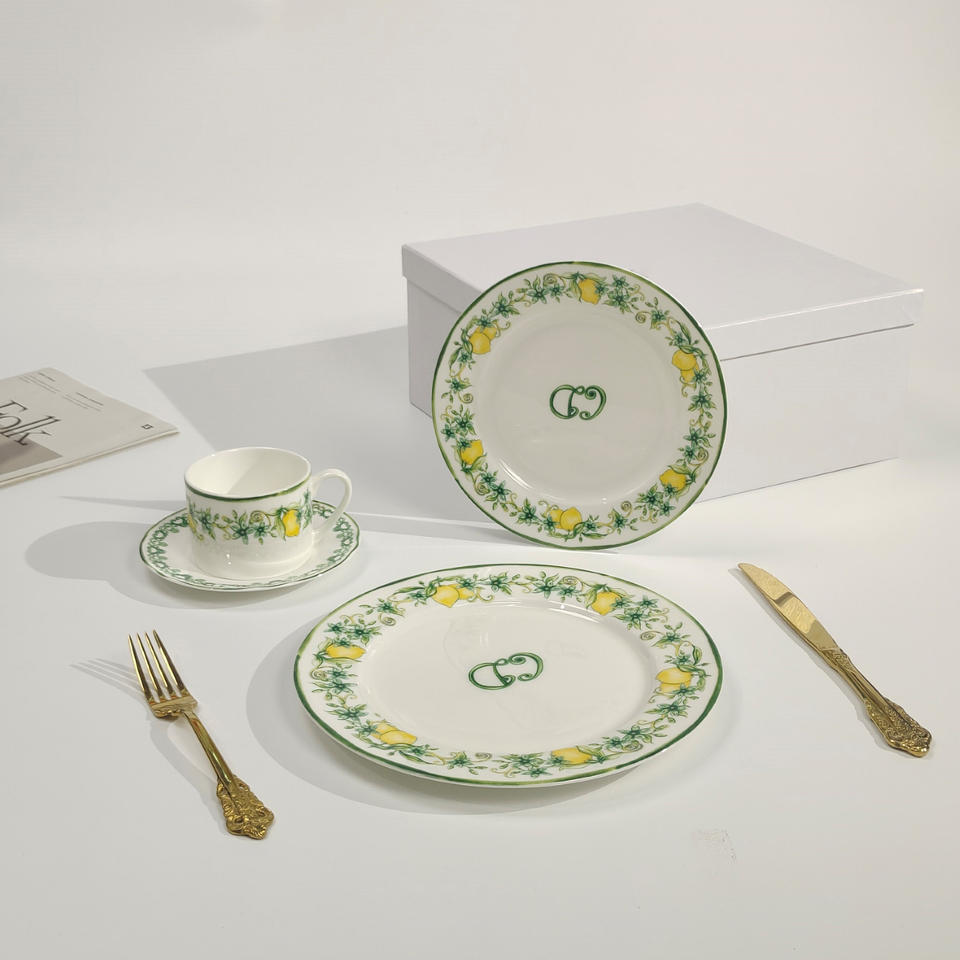Ventes en gros de services de vaisselle en porcelaine fine européenne de luxe à motifs citronnés