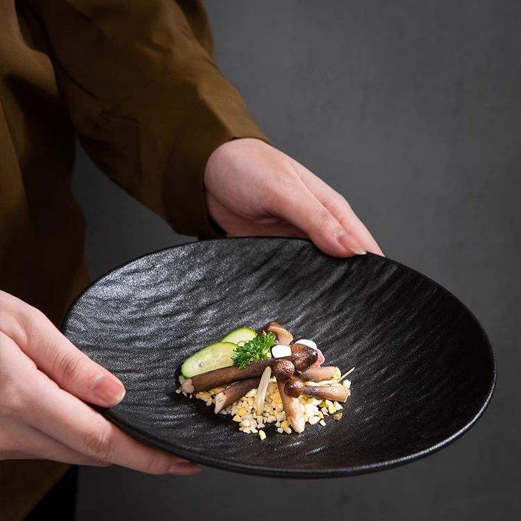 Assiette en céramique à rayures européennes en relief, idéale pour les banquets de mariage et les restaurants haut de gamme