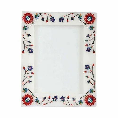 Cadre photo en marbre pour exportation en gros, avec incrustation de pierres précieuses, décoratif, idéal pour offrir, pour décoration murale