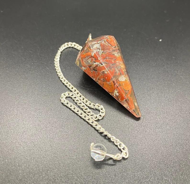 Vente en gros de pendule artisanal à pointe de cristal de jaspe rouge à facettes cône d'orgone modèle en pierre de palmier souvenir décoratif pour la maison