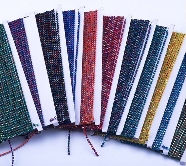 Chaîne de strass en plastique avec pierres de cristal de couleur AB, garniture de chaîne de strass, vente en gros directe usine